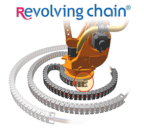 | 旋轉式電纜拖鏈 可以應用於旋轉機器或機器人保護電纜連接到,通過不打擾電纜的運動和方向性設計的,並且安全地保護電纜從外部的危險因素。免費的彎曲半徑過程中可以控制彎曲半徑和反向自動彎曲錨鏈的半徑,這個新概念電纜鏈,最大限度地彎曲半徑的流動性,是由CP系統自身先進的技術開發,並已經為這項技術的專利。這是新一代電纜鏈,最小化由獨特帶的連接方法的灰塵和噪聲, 可以應用到其中請求的灰塵和噪聲的調節工作位置。 |