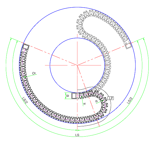 | L:The Length of chain LS/2: The half of total storke LS:Total stroke, total traveling distance of the equipment LP: Loop length P:Length of each pitch R:Re Bending radius of chain Ir:Inner radius Or: Outer radius |