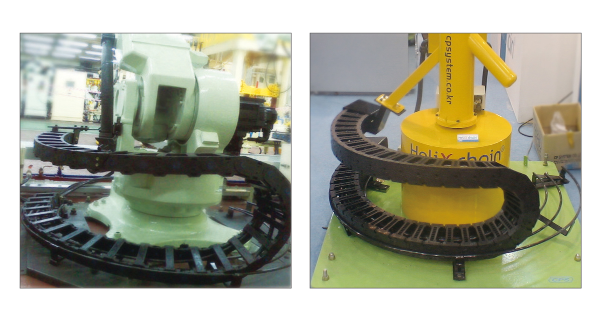 ![]() 螺旋式拖鏈為機器人或旋轉運動機械應用的專用電纜拖鏈,它可以通過引導保持在旋轉軌跡上移動 防止電纜外漏風險。 |